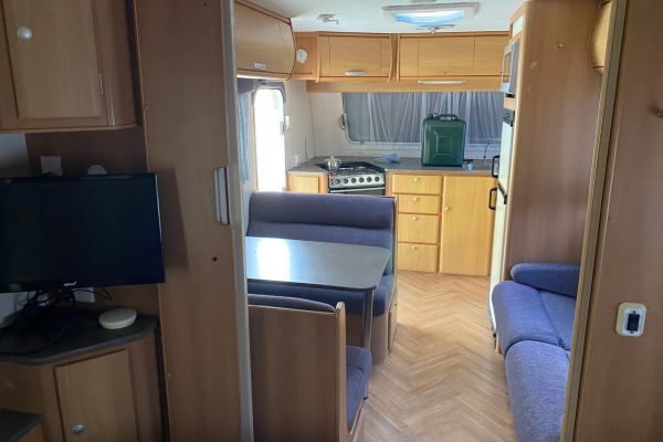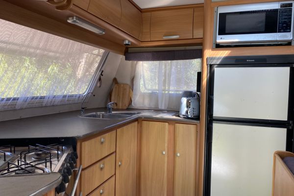 The 25ft Jayco Sterling Van is able to sleep 2 in a queen bed with a lounge that would suit young children. Kitchen with table seating area for 4 (can be converted to a bed for 2 young children)– Microwave – Cookware – Toaster – Kettle – Crockery – Glassware – Cutlery – All Linen including Pillows and Towels – BBQ, 2 Camp Chairs and with table in annex with room for a swag or 2 if required – Fire Pit .